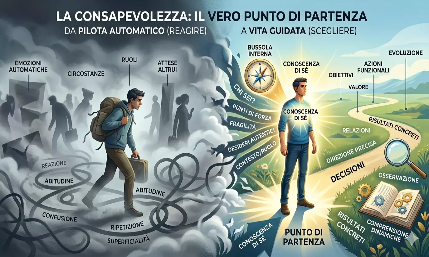 Come conoscere te stesso per migliorare decisioni, relazioni e direzione personale La consapevolezza è una parola che oggi viene utilizzata ovunque, spesso svuotata del suo significato più profondo. Si parla...